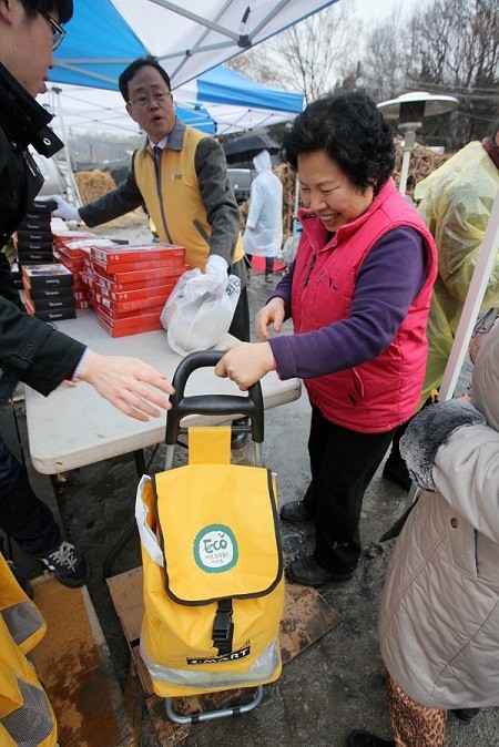 이마트가 2012년 40개 협력회사와 함께 '이마트와 함께 따뜻한 겨울 만들기' 사회공헌활동을 펼친데 이어 지난 23일에는 서울 방배동 전원마을에서 기부물품 전달식을 가졌다.이마트는 이 날 조손가정의 노인과 아동을 대상으로 이마트 봉사단, 협력사 대표들과 함께 떡케익 커팅식, 희망풍선 날리기, 떡국 식사 대접, 희망마차 물품전달 등 봉사활동을 펼쳤다.