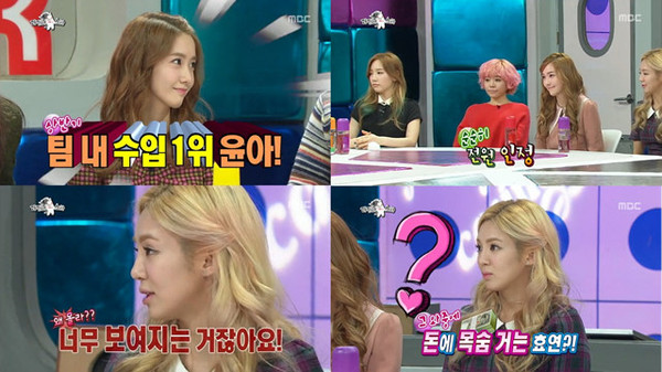이날 방송에서 MC 김국진은 "지난해 상반기 소녀시대 수입 1위는 윤아로 알려졌는데 맞느냐"고 물었다.