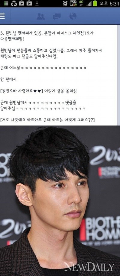 공개된 사진에는 원빈 팬카페에 얽힌 에피소드가 담겨 있다. 한 팬이 원빈의 팬까페에 “원빈오빠 사랑해요♥♥”라고 글을 올리자, 원빈이 댓글을 통해 “저도 사랑해요. 하트하트 근데 하트는 어떻게 그려요?”라는 댓글을 달아줬다.