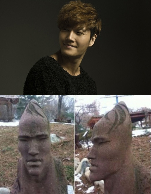 공개된 사진은 전주의 한 동물원에 세워진 석상의 모습을 촬영한 것으로 돌을 깎아 만든 사람 얼굴의 조각상이 담겨 있다. 이 조각상은 작은 눈과 긴 눈꼬리, 살짝 돌출된 광대와 날렵한 턱선, 도톰한 입술 등 김종국과 흡사해 보는 이들의 놀라움을 자아낸다.
