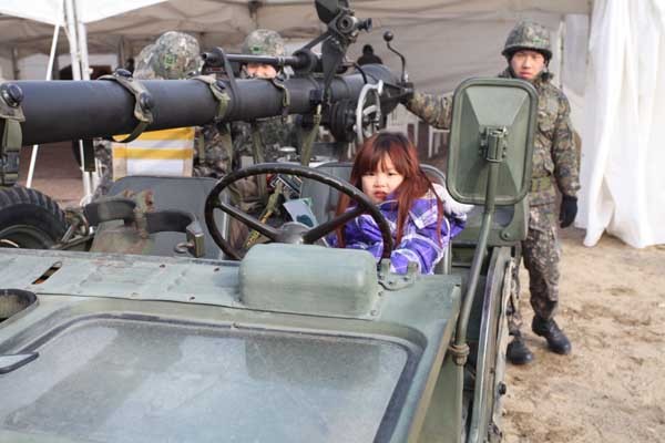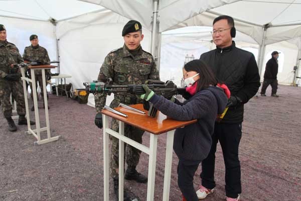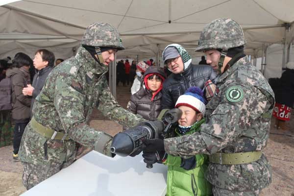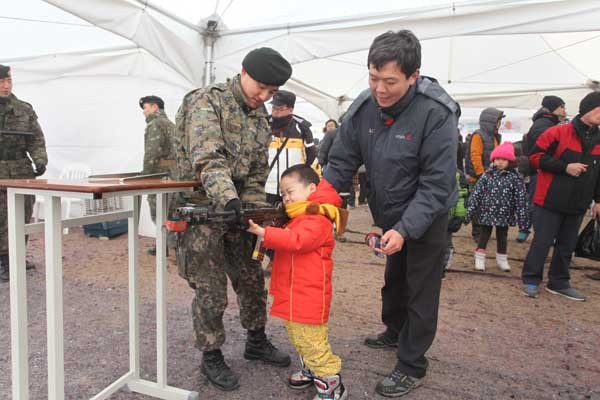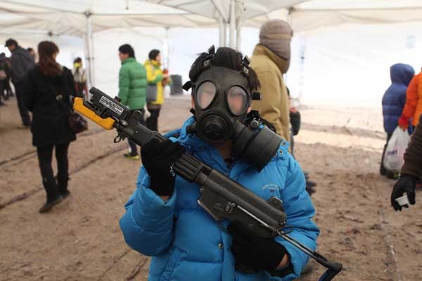 오는 27일까지 열리는 강원 인제군 빙어축제에 때 아닌 총, 대전차무기 등이 등장했다.