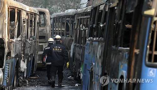 시내버스 38대를 태운 서울 강서구 외발산동 버스차고지 화재사건을 수사 중인 경찰이 방화 피의자인 전직 버스기사 황모씨를 체포했다.