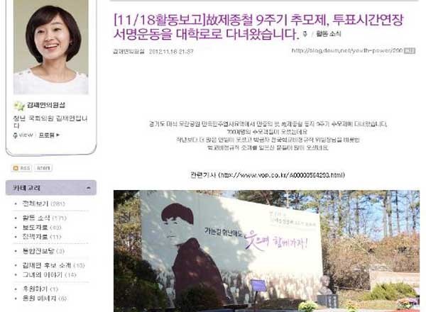 자신의 블로그에 ‘가는 길 험난해도 웃으며 함께 가자’라는 구호를 적으며 ‘투쟁’을 독려했다.