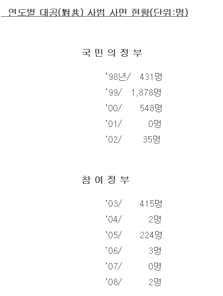 새삼 비교되는 것은 김대중-노무현 정부에서는 오히려 북한정권을 이롭게 한 간첩 등 대공사범에 대해 수천명을 사면했다는 점이다.