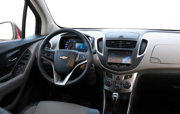 트랙스의 마이링크 시스템은 7인치 터치스크린 디스플레이로 스마트폰과 연동해 전화통화, 음악감상, 내비게이션 등이 가능하다.