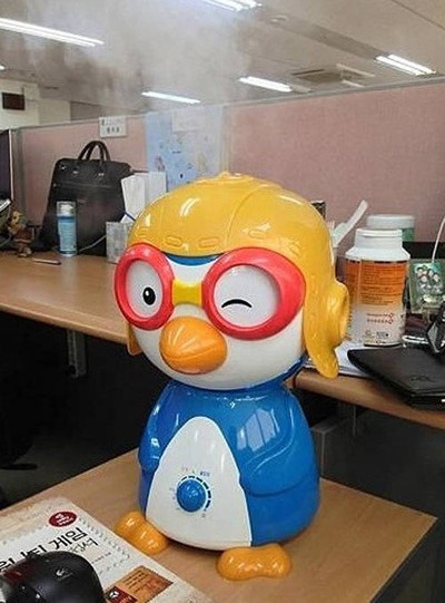 사진 속에는 머리 사이로 김이 모락모락 나고 있는 인기 캐릭터 뽀로로 모양의 가습기가 담겨 있다. 특히 '열받은 뽀로로'는 웃는 얼굴로 윙크를 하면서도 머리에서는 열을 내뿜고 있어 웃음을 자아낸다.