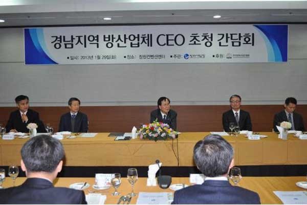 방위사업청(청장 노대래)은 지난 29일부터 30일까지 경남 창원에서 ‘경남지역 방산업체 CEO 초청간담회’를 열고 해군 전력화 현장과 주요 방산업체를 방문했다고 밝혔다.