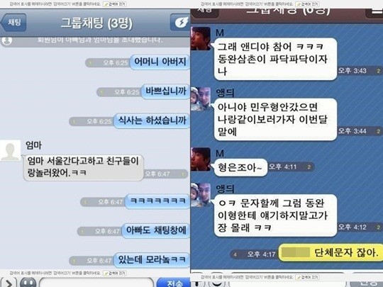 앤디는 이민우와 대화 도중 동완이형 몰래 가자고 말하지만, 동완은 ‘단체문자’라며 타박을 준다.