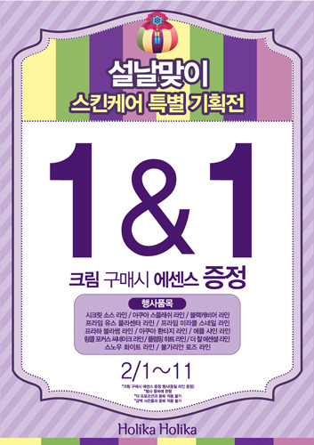 민족 최대 명절인 설날을 맞아 홀리카 홀리카에서 스킨케어 ‘1&1’ 이벤트를 진행한다.
