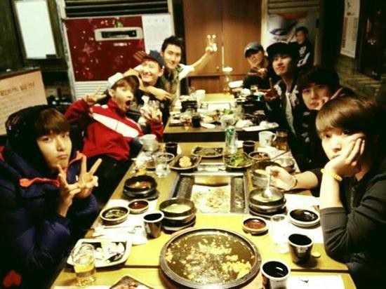 아이돌그룹 슈퍼주니어의 떠들썩한 저녁 식사 사진이 공개됐다.
