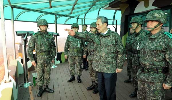김 장관은 최근 김정은이 “전면적 대결태세를 갖추라”고 지시한 점을 거론하며 북한군이 도발하면 초기에 철저히 분쇄하라고 당부했다. -