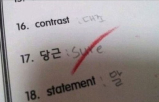 응시자는 ‘당근’을 ‘신조어’로 착각해 ‘sure’라고 답을 적었다.