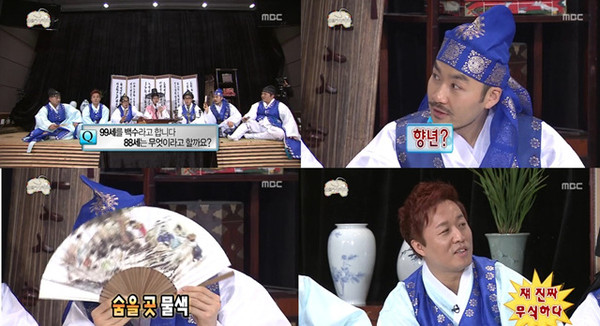 애장품 소개를 마친 뒤 MC 유재석은 첫번째로 "99세를 이르는 말은 백수, 88세를 이르는 말은 무엇인가"라는 문제를 냈다.