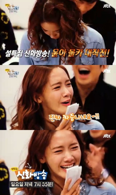 특히, 이 과정에서 눈물을 흘리는 윤아의 모습이 전파를 타 궁금증을 자아냈다. 이날 신화는 소녀시대의 출연을 기념해 윤아의 몰래카메라를 준비한 것.