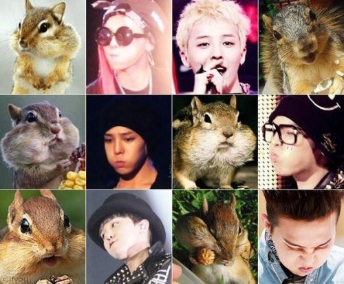 공개된 사진은 팬들이 직접 지드래곤과 다람쥐의 닮은 모습을 편집해 올린 것. 사진 속 지드래곤은 입을 벌리고 있거나 뾰로통한 표정, 볼을 부풀리는 표정 등을 짓고 있으며, 이 모습은 다람쥐와 상당히 닮아 있어 눈길을 끈다.