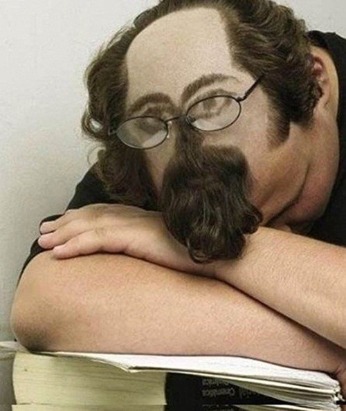 ‘편히 자는 방법’이란 제목이 붙은 화제의 사진 속에는 한 외국인 남성이 책 위에 엎드려 자는 모습이 담겨있다.