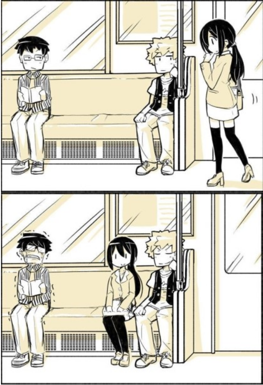 남자들의 묘한 경쟁 심리를 그린 웹툰이 화제를 낳고 있다.최근 한 온라인 커뮤니티에 올라온 이 웹툰에는 지하철에 두 남성과 한 여성이 등장한다.자리에 앉아있던 두 남성은 각각 멀찌감치 떨어져 앉아있고 한 여성은 어느자리에 앉을지를 고민하고 있다.왠지모를 긴장된 시간이 흐른 뒤 이 여성은 한 남성의 옆자리를 선택한다.여기서 나오는 두 남성의 반응이 묘하다.자신의 옆자리에 여성이 앉은 남성은 흐믓한 표정을 짓고 있고 그렇지 못한 남성은 분통을 터뜨린다.여성이 옆자리에 앉는 것만으로 두 남성이 보이지 않는 경쟁을 벌인 것.남자들의 묘한 경쟁 심리를 본 네티즌들은 "나도 저런 적 있다", "이상하게 긴장되는 상황이다", "이렇게 지고는 못 살아" 등의 반응을 보였다.
