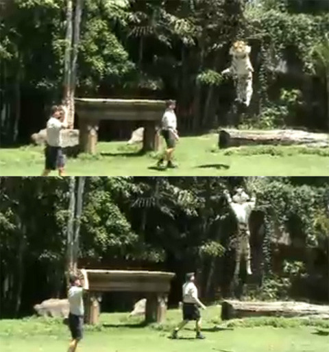 호랑이의 점프 실력 영상을 접한 네티즌들은 “호랑이, 고기를 먹겠다는 의지가 대단하다.” “하늘 뚫고 날아갈 것만 같다.” “발에 용수철 달린 줄 알았다.”라는 댓글을 달며 놀라워했다.
