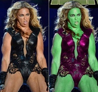 특히, 일그러진 비욘세의 표정은 마치 영화 ‘헐크′ 속 주인공을 연상케 한다. 비욘세 측은 이 사진의 삭제를 요청했지만 이 사진은 이미 ‘헐크’로 패러디돼 인터넷을 통해 빠르게 퍼지고 있는 상황이다.