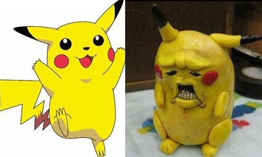 게재된 사진 속에는 찰흙으로 만든 괴이한 모양의 '포켓 몬스터' 인기 캐릭터 피카츄 조형물이 담겨 있다. 사진 속 피카츄는 귀여운 모습은 온데간데 없이 찡그린 표정과 축 쳐진 눈매, 팔자주름 등이 마치 노란 괴물을 보는 듯하다.