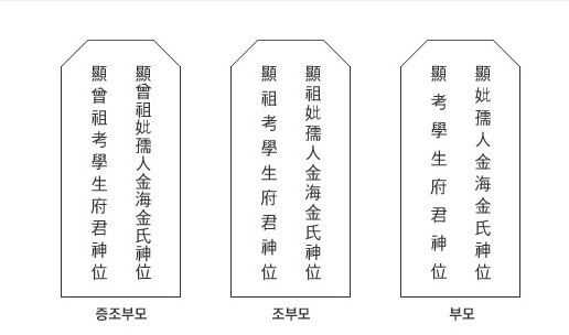 이때 오른쪽에 어머니의 신위를 쓰고 왼쪽에 아버지의 신위를 쓴다.