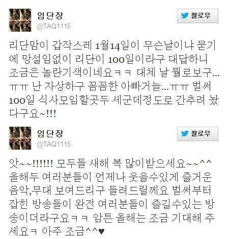 임윤택은 1월 3일에도 트위터를 통해 팬들에게 '새해 복 많이 받으시라'는 인사를 건네는가하면, "올해도 여러분들이 언제나 웃을 수 있게 즐거운 음악을 들려드리겠다"는 신년 계획도 전했었다.