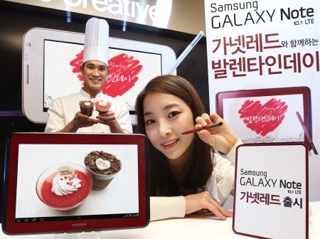 삼성전자는 오는 14일 발렌타인데이와 화이트데이, 입학과 졸업 시즌을 맞아 여성 소비자를 겨냥한 ‘갤럭시노트10.1 LTE’- ‘가넷 레드’ 모델을 이통3사를 통해 출시한다고 13일 밝혔다.