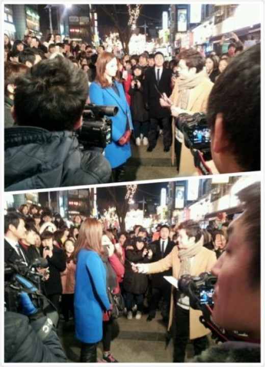 배우 한채영이 홍대 길거리에서 포착됐다.한채영은 13일 중국판 트위터 웨이보에 "한국 젊은이의 거리 홍대! 시민과 함께 인터뷰, 사람이 많아 정말 즐겁고 재밌었어요"라는 메시지와 함께 두 장의 사진을 게재했다.