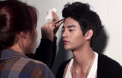 사진 속 서인국은 촬영을 위해 스태프에게 메이크업을 받고있는 모습이다.