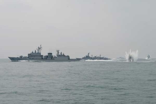 해군은 지난 13일부터 북한의 추가 도발에 대비해 동·서해에서 대규모 해상기동훈련을 실시하고 있다고 밝혔다. -