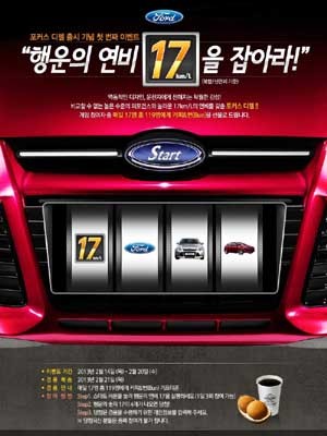 • 포드코리아 페이스북의 첫 번째 이벤트는 포커스 디젤의 연비인 ‘17km/l’를 알리는 ‘행운의 연비 17을 잡아라!’다.