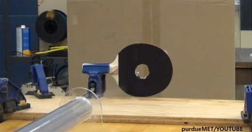 공개된 영상에는 탁구공이 마하 1.23이라는 엄청난 속도를 만나 상상을 초월하는 괴력을 발휘하는 모습이 담겨 있다.