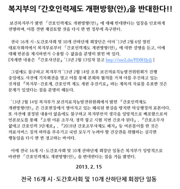 간협 관계자는 "간호사와 간호조무사는 엄격히 업무가 다른데, 이를 무시한 정책을 펴게 되면 전문성이 현격히 떨어질 수 있다"고 설명했다.