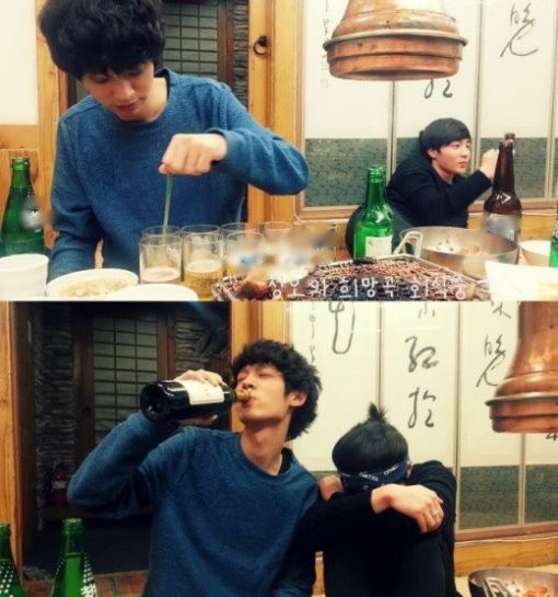 공개된 사진 속에는 정준영과 로이킴이 편안한 복장으로 회식을 즐기고 있는 모습이다. 정준영은 소주와 맥주를 섞은 일명 ‘소맥’을 제조 중이며, 로이킴은 그 옆에서 소심한 표정을 지으며 조용히 앉아 있다.