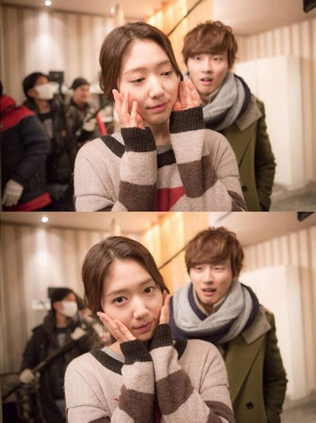 지난 16일 tvN 드라마 '이웃집 꽃미남' 공식 트위터에는 윤시윤과 박신혜의 촬영장 비하인드 컷이 공개됐다.