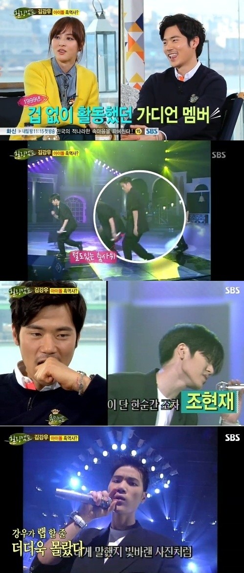 배우 김강우가 아이돌그룹 가디언 출신이라는 사실이 밝혀졌다.김강우의 처제인 한혜진은 지난 18일 방송된 SBS '힐링캠프, 기쁘지 아니한가'(이하 '힐링캠프')에서 형부가 아이돌 출신이라고 깜짝 폭로했다.