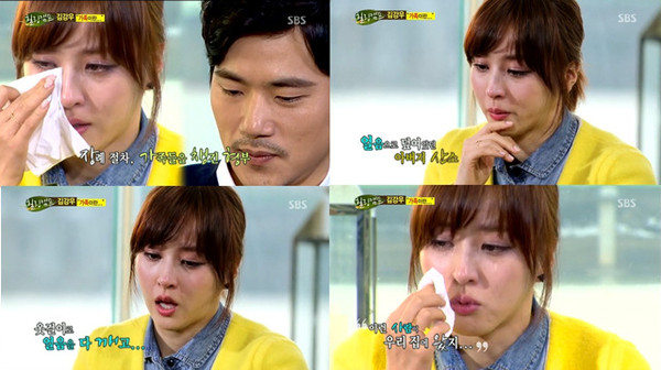 배우 한혜진이 형부 김강우에 대한 고마움을 전하며 눈물을 흘렸다.
