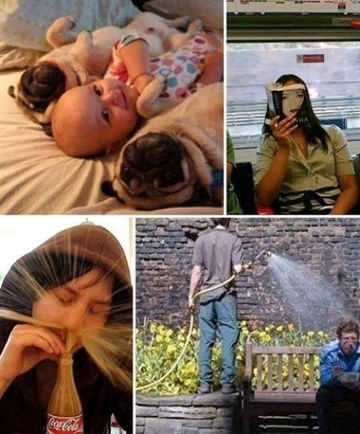 공개된 '광대 자극 사진'에서는 귀여운 아기와 강아지 두 마리가 침대에 누운 모습, 어떤 여성이 지하철에서 책을 읽고 있는 모습이 담겨져 있다.