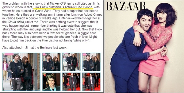 "짐의 새로운 여자친구는 '클라우드 아틀라스'에 함께 출연한 배두나다.