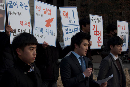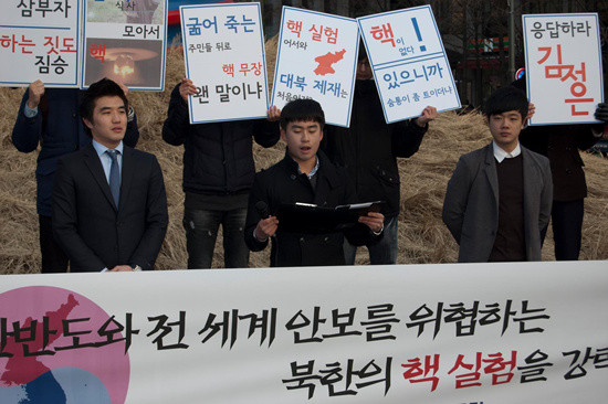 한국대학생포럼이 지난 20일 오후 5시 북한의 3차 핵실험을 규탄하는 기자회견을 가졌다.
