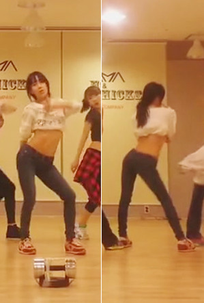 공개된 사진에는 매끈한 몸매 라인과 탄탄한 복근을 자랑하고 있는 조현영의 모습이 담겨 있다. 또, 안무영상에서 조현여은 티셔츠를 가슴 밑까지 말아 올린 초미니 상의를 소화, 날씬해진 허리와 복부라인을 드러내 눈길을 사로잡았다.