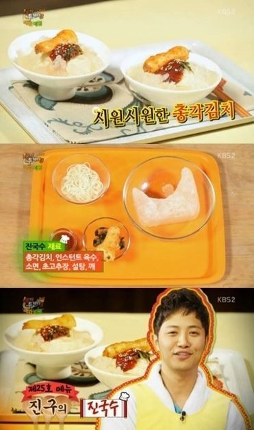 배우 진구의 ‘진국수’가 ‘해피투게더’ 야간매점 25호 메뉴로 등록됐다.