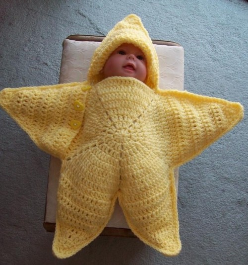 공개된 사진은 불가사리 모양의 노란 아기 옷이 담겨 있다. 해당 옷에는 신생아 마네킹이 들어가 있으며, 불가사리 각 꼭지는 아기의 양 팔과 두 다리가 들어갈 수 있도록 만들어져 눈길을 끈다.