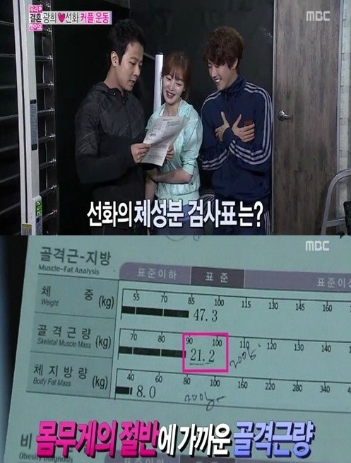 특히, 한선화는 골격근량이 몸무게 절반에 가까운 21.2kg, 체지방이 단 8kg이라는 사실이 밝혀지며 '베이근녀'임을 입증했다.