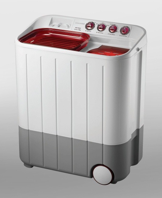 세탁실이 별도로 없어 보관위치와 사용위치가 다른 서남아 세탁환경을 고려해 이동이 편리하도록 세탁기에 바퀴와 손잡이를 만들었다.