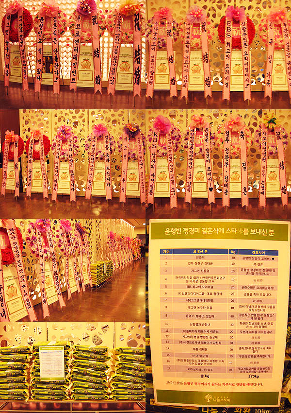 윤형빈, 정경미 결혼식 쌀화환을 진행한 사회적기업 나눔스토어 관계자 측은 "자칫 허례허식해 보일 수 있는 결혼문화가 최근들어 남들의 시선이나 관행에 벗어나 어려운 이웃에게 도움을 줄 수 있는 의미있는 행사문화로 변화하고 있다"며 "쌀 소비를 촉진하는 동시에 어려운 이웃을 도움으로써 우리 사회가 따뜻해 질 것"이라고 전했다.