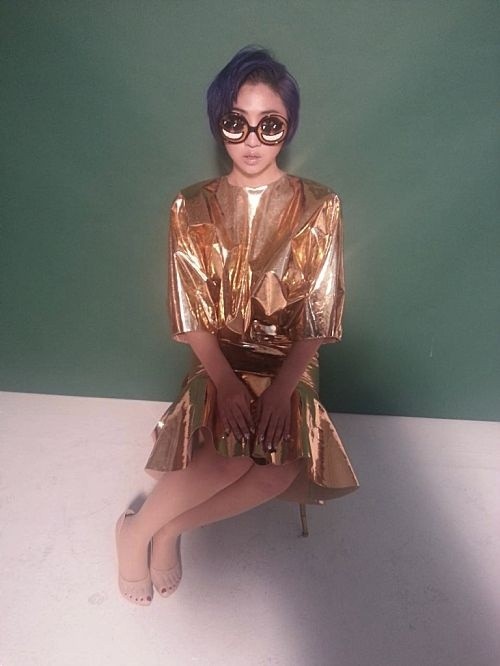 YG엔터테인먼트는 26일 공식 미투데이에 '금박지'를 떠올리게 하는 묘한 의상을 입고 포즈를 취하고 있는 공민지의 인증샷을 공개했다.