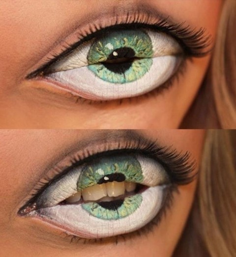 공개된 사진은 스웨덴의 한 메이크업 아티스트가 개발한 것으로 초록색 눈동자를 한 여성의 모습이 담겨 있다. 그런데 메이크업 모델이 입술을 살짝 벌리자 가지런한 치아가 보이며 충격을 주고 있다.