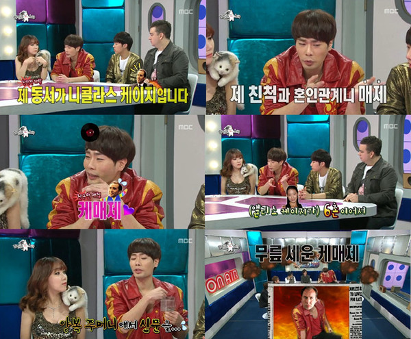 이에 윤종신은 "동서라면 뮤지의 아내분의 친척인가?"라고 묻자 뮤지는 "제 쪽 친척과 혼인관계다. 아 동서가 아니라 매제다" 라며 니콜라스 케이지가 매제임을 설명했다.
