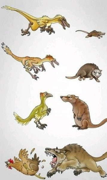 게시자는 “세월이 흘러 익룡은 닭으로 변했고, 매일 당하던 쥐는 점점 진화해서 늑대가 됐다”며 처음과 상황이 역전된 모습에 ‘이것이 진정한 복수’라고 덧붙였다.